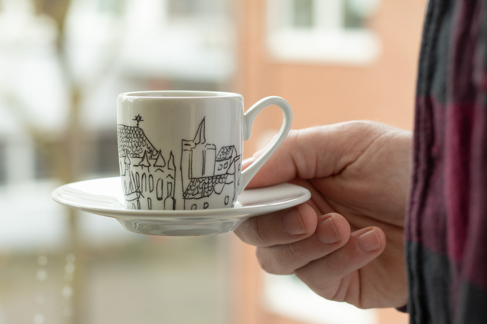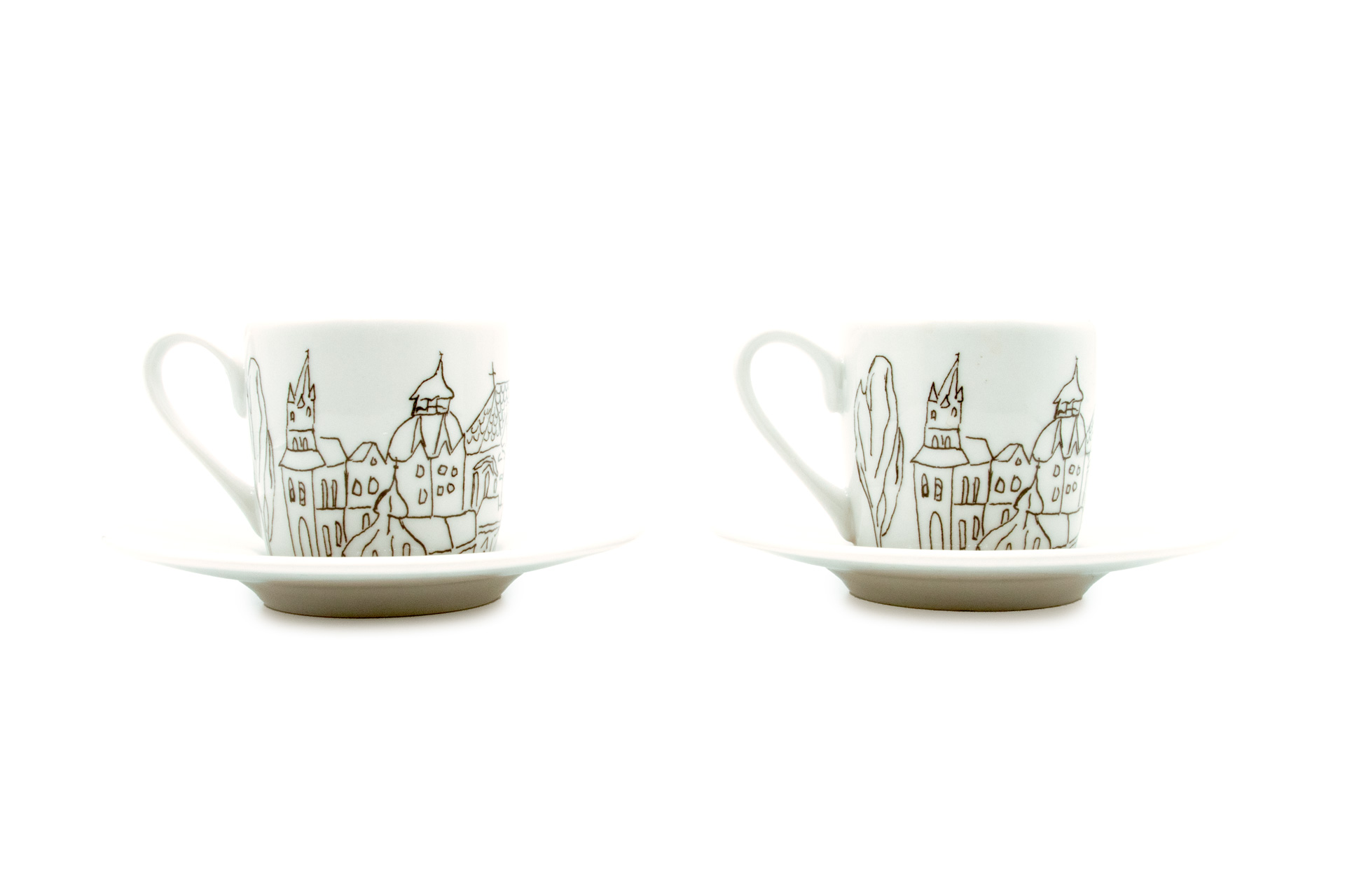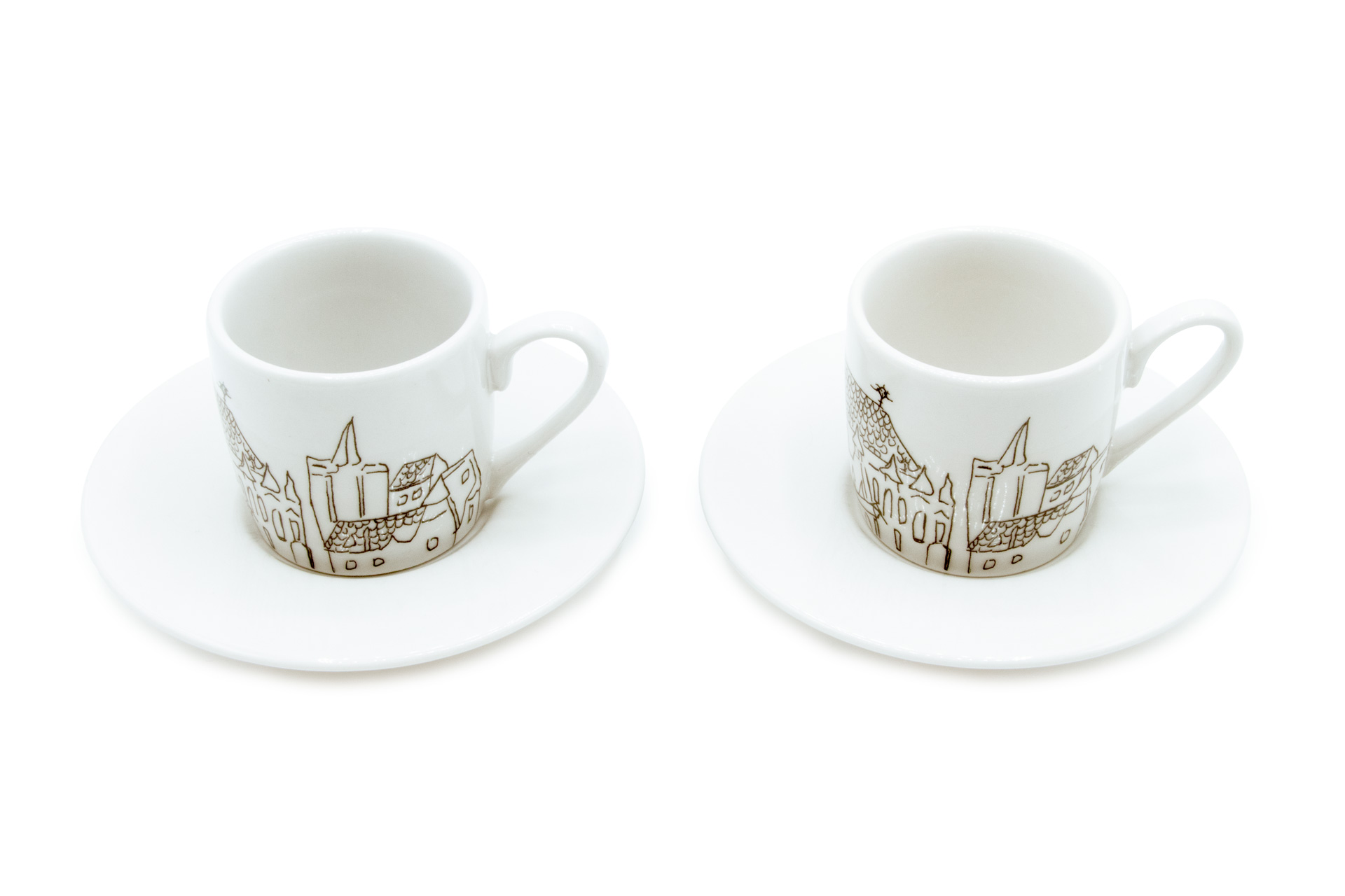 Manchmal ist die Lust auf köstlichen Kaffee einfach zu groß. Greifen Sie zu Ihrem besten Espresso und genießen Sie ihn in einer unserer Espressotassen. Die kleinen Tassen aus bestem Porzellan kommen in verschiedenen Designs – alle davon mit stilisierten Blicken auf die wunderschöne Stadt Aachen. Die Designs sind handgemacht von unseren Künstler*innen Ozan Aktas, Sürejja Durovska und Nam Vu. Und wenn Sie nicht allein trinken wollen, haben wir gute Nachrichten für Sie: Ihre neuen Espressotassen kommen im praktischen 2er-Set. Genießen Sie Ihren Espresso mit Freunden oder Familienmitgliedern. Dank beiliegenden Untertassen im Durchmesser von 12 cm kann auch nichts danebengehen. Die Tassen selbst bieten ein Trinkvolumen von 0,085 l, bei einem Durchmesser von 5,5 cm und einer Höhe von 5,4 cm – genug für eine gute Portion Espresso.