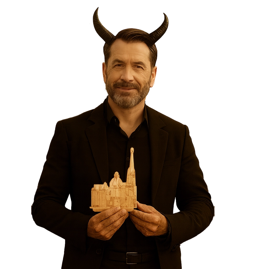 Damals wollte ich ihn für mich – den Dom. Jetzt gibt’s ihn für euch… als Magnet, aus Holz, zum Dranhängen. Passt perfekt an den Kühlschrank, die Pinnwand oder das Tor zur Hölle. Handlich, stilvoll, in schönen Farben und leicht teuflisch – wie ich’s mag. Wenigstens hält der Magnet besser als mein Vertrag. Das ist meine Art von Revanche. Der Teufel: Aufsteller aus Holz.