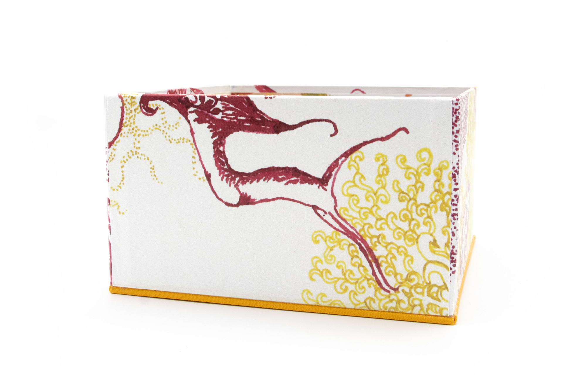 Geben Sie Ihrer Schmucksammlung ein Zuhause! Die Schmuckdosen im farbenfrohen Design bieten genug Platz für Ihre liebsten Stücke. Dazu können Sie aus drei Ausführungen wählen. Klein: B 9,7 cm, H 9,7 cm, T 6,6 cm, Mittel: B 11,4 cm, H 11,4 cm, T 7,4 cm und Groß: B 13,5 cm, H 13,5 cm, T 8,4 cm. Sie sehen, es ist für jede Sammlung etwas dabei. Die rechteckige Bauweise ist dabei schlicht aber elegant und äußerst robust. Der passgenau gefertigte Deckel sitzt perfekt, um Ihren Schmuck und weitere Gegenstände sicher zu verwahren, lässt sich aber komfortabel genug öffnen und schließen, damit sie ihren Schmuck im Handumdrehen an- oder ablegen können. Erfreuen Sie sich zudem an dem selbstgestalteten fungalen Design in warmen Rot- und Gelbtönen. Das handgemalte Muster setzt sich über die Seitenwände und den Deckel fort – so ist Ihre neue Schmuckdose in jedem Fall ein absoluter Hingucker und der ideale Platz für Ihre Ringe und Ketten.