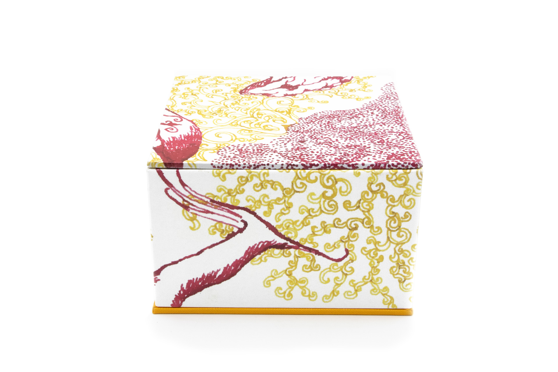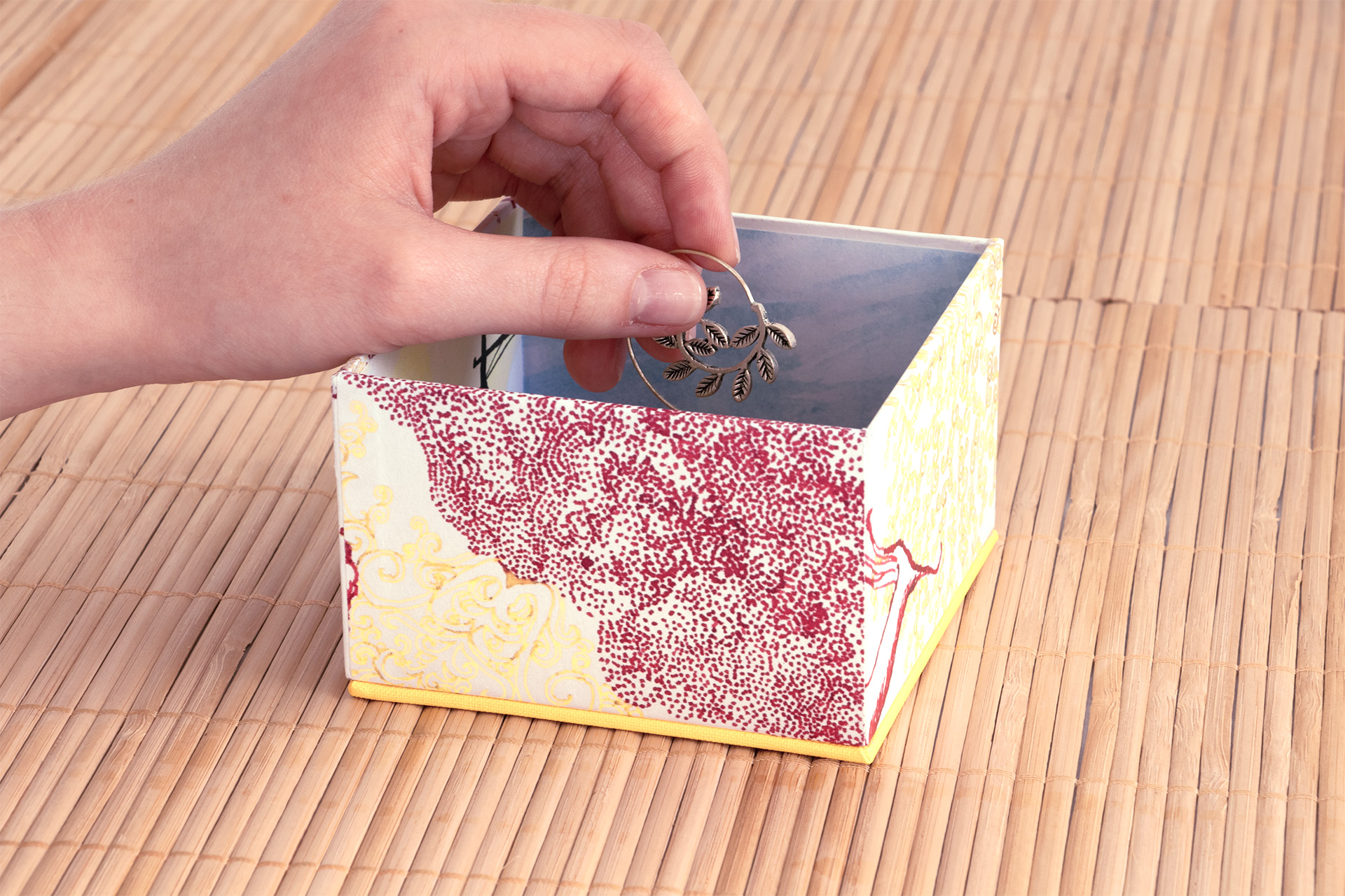 Geben Sie Ihrer Schmucksammlung ein Zuhause! Die Schmuckdose im farbenfrohen Design bietet genug Platz für Ihre liebsten Stücke. Dazu können Sie aus drei Ausführungen wählen. Klein: B 9,7 cm, H 9,7 cm, T 6,6 cm, Mittel: B 11,4 cm, H 11,4 cm, T 7,4 cm und Groß: B 13,5 cm, H 13,5 cm, T 8,4 cm. Sie sehen, es ist für jede Sammlung etwas dabei. Die rechteckige Bauweise ist dabei schlicht aber elegant und äußerst robust. Der passgenau gefertigte Deckel sitzt perfekt, um Ihren Schmuck und weitere Gegenstände sicher zu verwahren, lässt sich aber komfortabel genug öffnen und schließen, damit sie ihren Schmuck im Handumdrehen an- oder ablegen können. Erfreuen Sie sich zudem an dem selbstgestalteten fungalen Design in warmen Rot- und Gelbtönen. Das handgemalte Muster setzt sich über die Seitenwände und den Deckel fort – so ist Ihre neue Schmuckdose in jedem Fall ein absoluter Hingucker und der ideale Platz für Ihre Ringe und Ketten.
